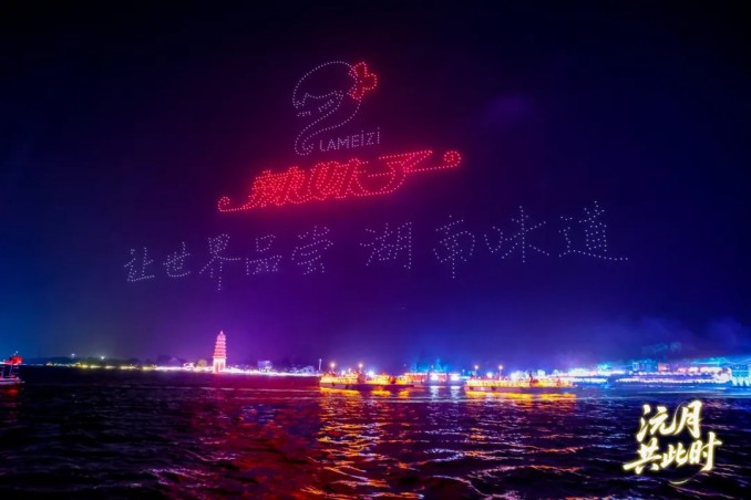 本次啟動(dòng)大會(huì)引人注目的環(huán)節(jié)之一——無人機(jī)表演中,辣妹子品牌形象驚艷亮相。數(shù)百架無人機(jī)在夜空中變幻出辣妹子品牌標(biāo)識和產(chǎn)品形象,與洞庭湖夜景交相輝映,展現(xiàn)出現(xiàn)代科技與傳統(tǒng)美食文化的結(jié)合。